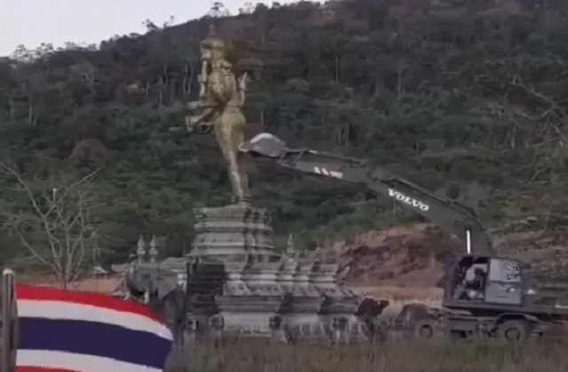 Kim Chanpanha, a government spokesman for Cambodia’s Preah Vihear province, said the statue was located entirely within Cambodian territory. According to him, the statue of Lord Vishnu was built in 2014 and was demolished with a bulldozer on Monday.