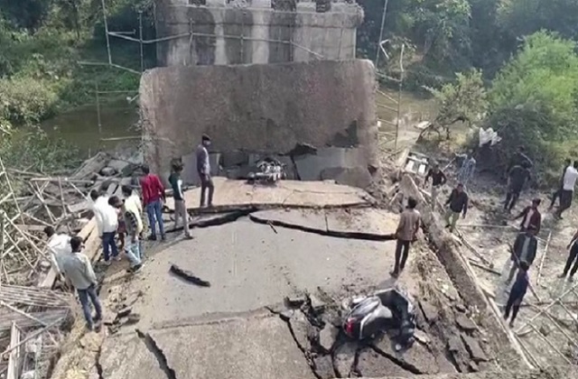 According to police, the bridge at Nayagaon on the Bareilly Pipariya road suddenly collapsed at around 11:15 a.m. on Monday. Two bikes were crossing the bridge at the time of the accident, and they fell down along with the bridge. One bike belonged to a man from Sehore district, while the other was being driven by a resident of Bareilly. Hearing the cries of the injured, passersby and villagers helped them get to the Civil Hospital in Bareilly for treatment.