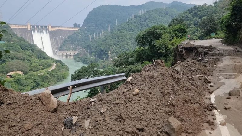 The main road leading to Bhakra Dam and the left bank power house of Bhakra Dam has been blocked due to landslides.