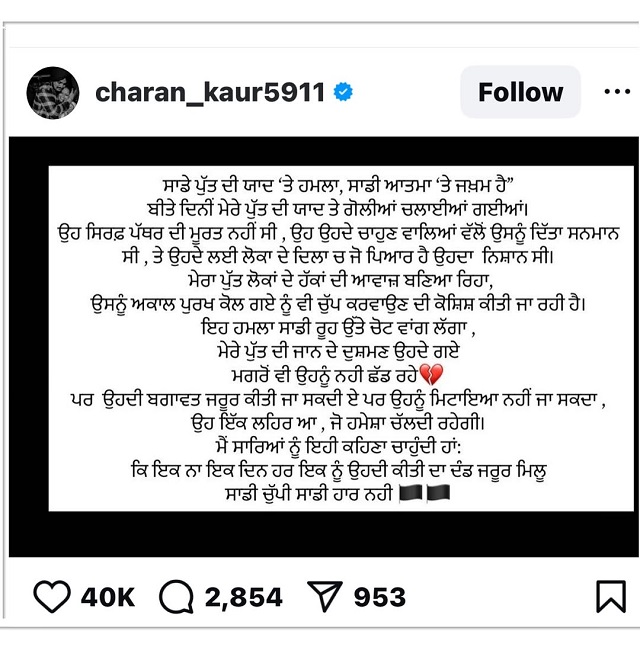 Charan Kaur posted in Punjabi on Instagram and wrote-